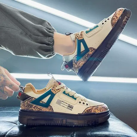 男鞋2023秋季新款潮流百搭男士运动鞋休闲鞋皮面防水增高小白潮鞋