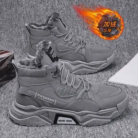 男鞋2023新款冬季潮流百搭高帮运动休闲青少年加绒加厚保暖潮鞋男