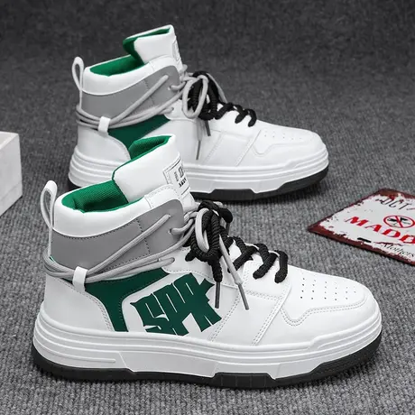 高帮男鞋2023年新款秋冬季潮流百搭运动休闲学生厚底增高小白潮鞋