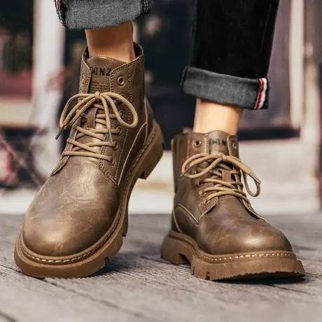 棕色复古马丁靴男款夏季高帮英伦风皮靴男士防水工装机车中帮皮鞋