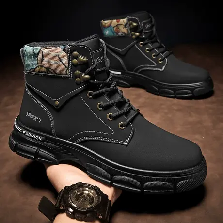 2024新款春季男工装靴子英伦风厚底沙漠马丁男靴高帮户外休闲男鞋